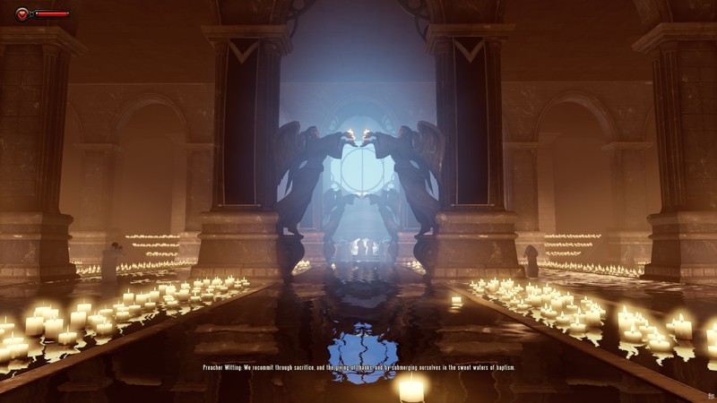 Продолжительность тоже на редкость нормальная – часов 12-13, если не осматривать каждый угол в поисках аптечек, снаряжения, денег и аудиодневников. Благо авторы не подгоняют нас палками – напротив, позволяют не спеша погулять по улицам небесного города, насладиться видами, обшарить комнаты, послушать беседы прохожих и прекрасные «каверы»-анахронизмы (например, вот и вот). Конечно, о «песочнице» речь не идёт, но дорогу в уже изученные районы перекрывают нечасто и всегда предупреждают в «точках невозврата».