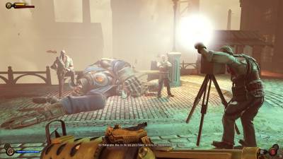 И чувства изоляции, привычного для игр Irrational, нет. Девитт бродит по Колумбии и общается с людьми, а не слушает монологи по рации, как Джек из BioShock. Плюс, его сопровождает замечательная помощница. Элизабет – не шаблонный NPC, за чью жизнь мы должны трястись всю дорогу, и врагам на неё плевать. Она меж тем подкидывает аптечки, патроны и деньги, взламывает замки, ставит раненого Букера на ноги и, стоит попросить, материализует оружие и автопушки через пространственно-временные разрывы. О да, эта «сестричка» в бело-голубом платье – далеко не обычная девушка! Вот уж вопрос, кто кого оберегает.
